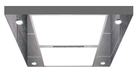 Hairline stainless steel,Middle with enchased board and white shade organic lamp standard.