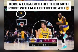 和科比一样都是在剩余14.8秒的情况下得到第60分!东契奇转发