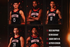 火箭今日首发球员中,杜兰特25分3板6助2断2帽、史密斯23分9板2助2断、申京15分9板10助2断、阿门14分7板4助、谢泼德14分4板4助2帽。