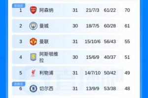 最新的积分榜情况如下。