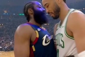 GIF——哈登塔图姆赛前拥抱致意