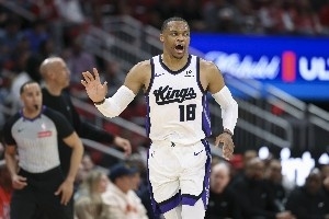 今天结束的NBA常规赛中,国王主场126-110战胜公牛。此役,威斯布鲁克出战34分43秒,17中7,其中三分5中3,罚球6中6,得到23分11篮板12助攻1抢断,没有失误,正负值+10。